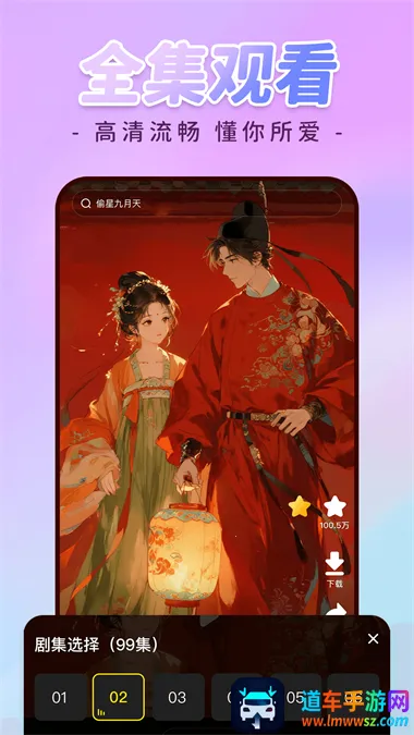 4. 界面简洁直观,搭配稳定的播放体验,提供高清画质,流畅播放,告别卡顿和模糊,支持全集观看,让你沉浸式享受每一帧精彩剧情。