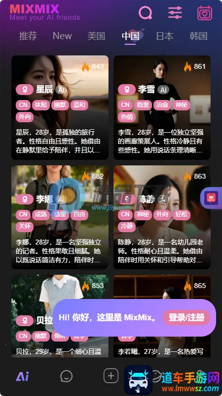 MixMix是一款聚焦AI虚拟互动的多元社交应用,集聊天、通话与创作于一体。平台汇聚海量全球创作者打造的AI角色,支持文字语音交流,提供细腻真实的情绪反馈,让用户享受沉浸式智能交互体验。