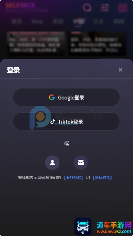4、在这里选择登录方式,支持谷歌,tiktok,邮箱等;