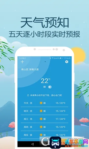 4. 支持多国家和地区使用,可实时定位,汇聚海量城市天气预报,还能选择多种方言播报天气,给您个性化体验。