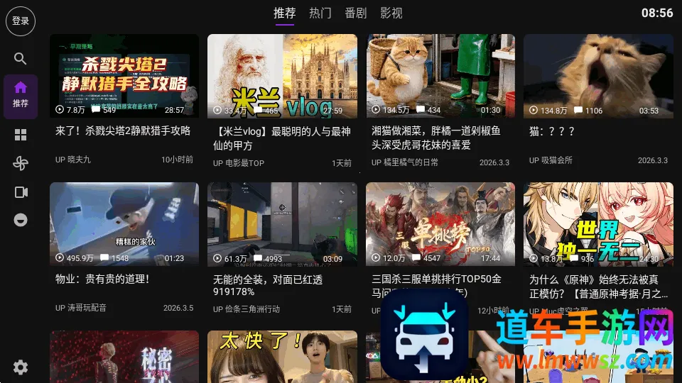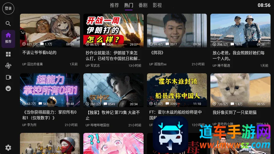 2、选择一个喜欢的视频打开,包含了推荐,热门,番剧,影视。