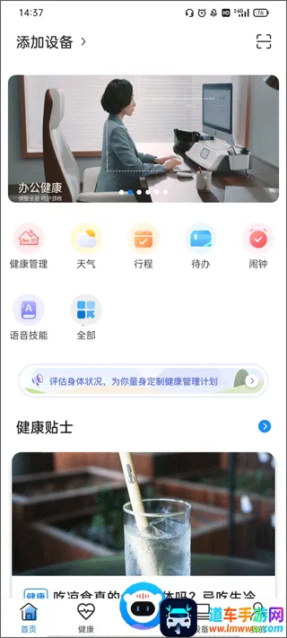 2. 贴心健康关怀:每日定时推送健康小贴士,设置久坐、喝水等提醒,结合智能工作站记录心率、体温等多项健康数据,关注您的身体健康。