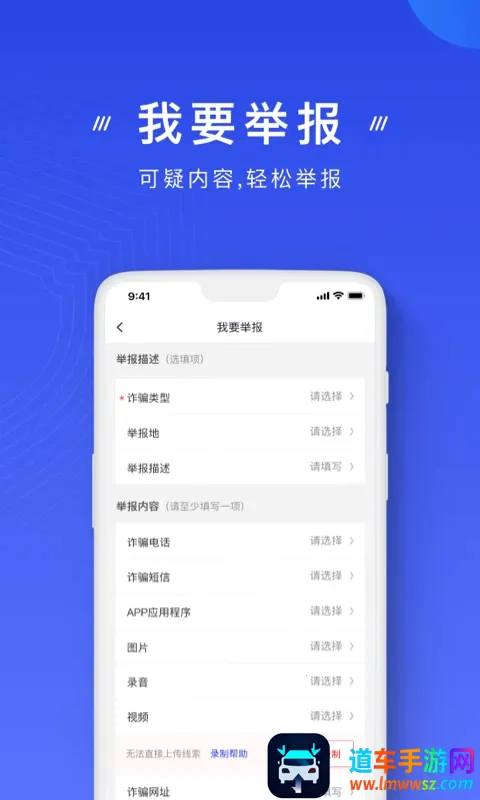 3、一键举报:遇到可疑人员事件,支持一键快速开启录屏录音举报,或在线提交涉案线索。