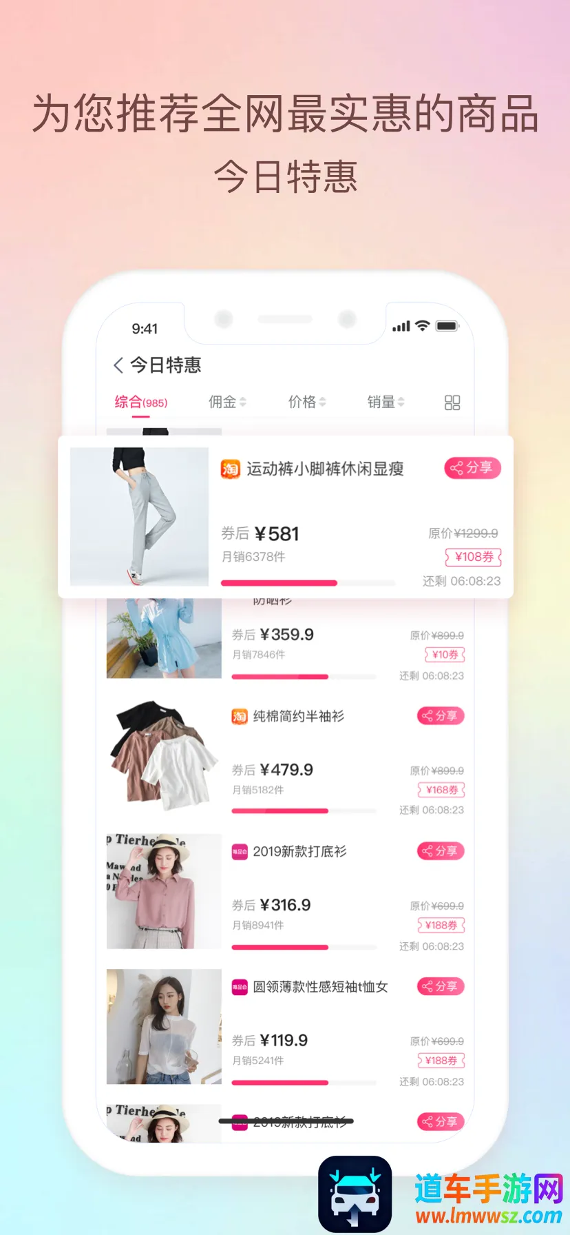 3、购物省钱:自用省钱,汇集各大商城隐藏优惠券,优惠幅度大,涵盖各类日常购物商品优惠券,支持一键搜索商品找券,还有9.9包邮限时特价抢购。