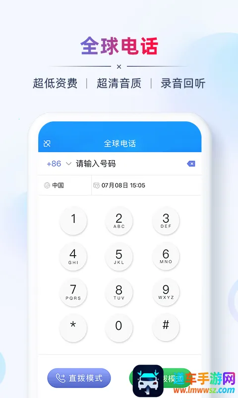 2. 全球电话:实现全球高清对话,费用低廉,自动录音,去电显号。全球通话质量有保证,无漫游和最低消费,轻松与国外客户沟通。