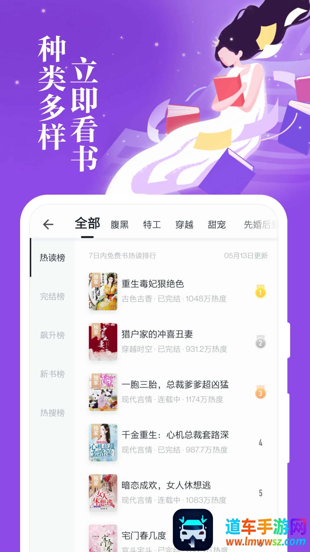 4. 榜单推荐:各大小说阅读类榜单及多种分类排行榜,为你推荐。还有书友热搜人气小说排行榜,帮你远离书荒,一键加入随时追更免费电子书。