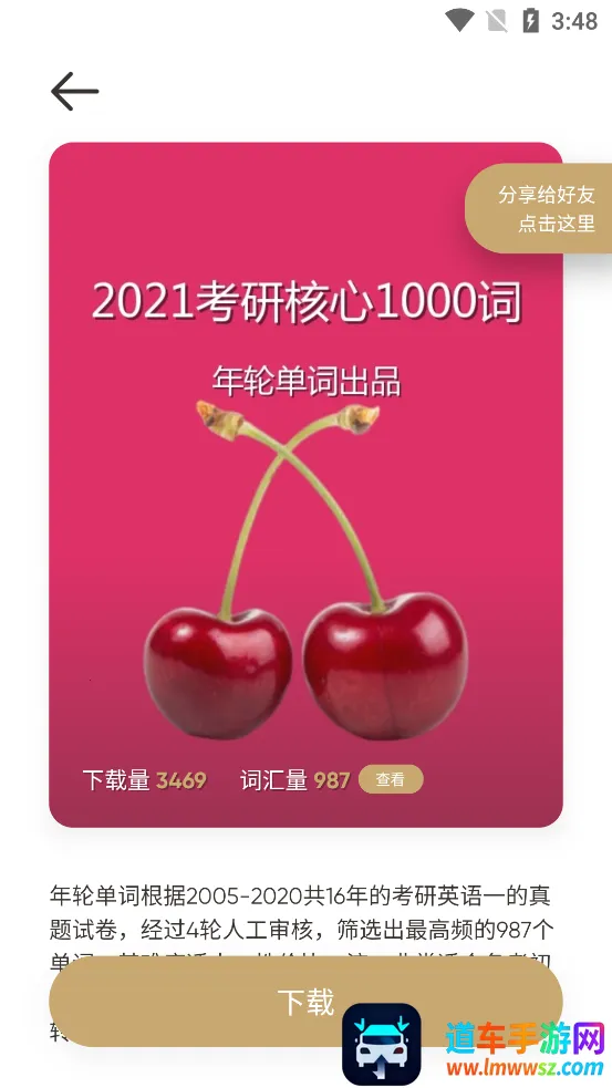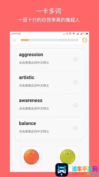 还在为记不住单词烦恼吗?快来试试年轮单词app!它是一款超棒的英语单词学习软件。这里有海量词库,涵盖四六级、专四专八、商务英语等,各种短语句子随便学。它能提供多样化记单词方法,比如用闪存卡记忆,采用词根记忆法代替死记硬背,多轮复习可反复背诵。完成一轮背诵后,能全量记忆,也能只背不熟悉的。还有特色模拟功能,帮你快速掌握考试重点。闯关模式拼写单词,完成一关进下一关。能提供真题例句助你巩固记忆,拼写错误的单词自动记录在生词本,方便继续复习。操作也简单,滑动屏幕就能轻松学下一个单词。不管是考研、考雅思托福,还是日常学英语,它都能满足你,让你随时随地高效学英语!