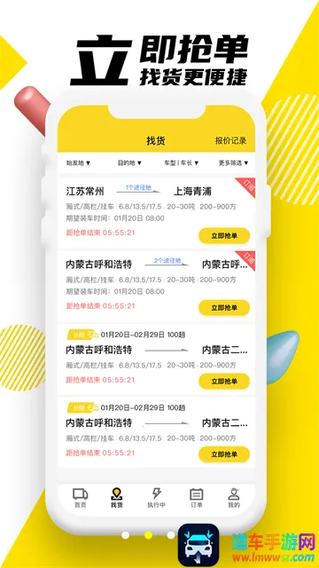 百万订单每日供应,抢单随心,操作简单易上手,分分钟即可接单,还有全智能城市智能推送,告别路边趴活,往来无空车,成本减半利润翻倍。