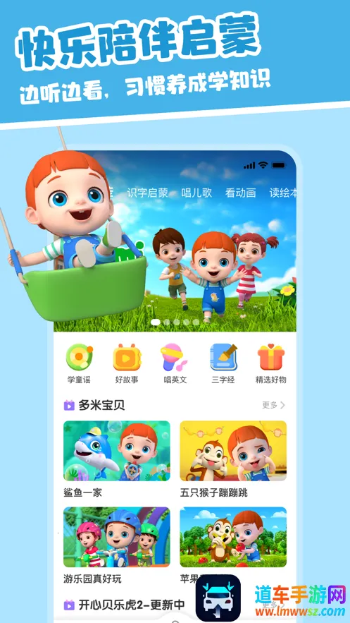 儿歌多米是儿童启蒙平台,通过游戏让孩子体验精彩启蒙教学。有丰富学习内容,采用卡通动画风格,能定制个性化儿歌,提供专业教育服务,涵盖多方面知识,助力孩子成长。