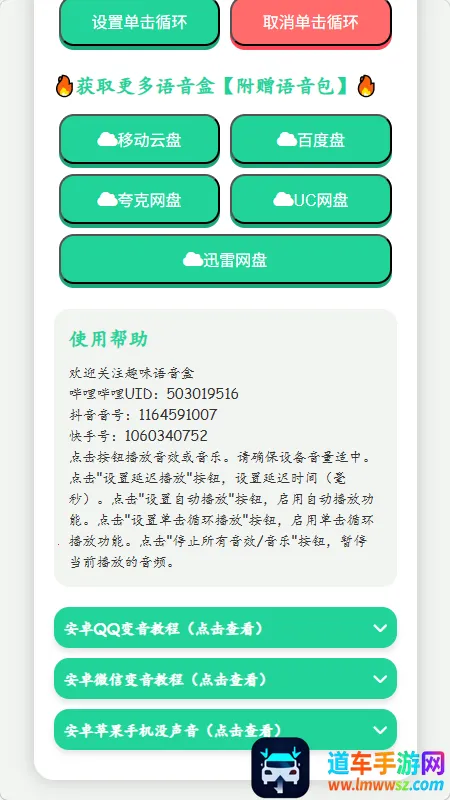 3、界面简洁清晰,布局合理,无需复杂操作。直接点击语音素材即可播放,下方还有语音包控制区域,能方便地暂停或定时播放。