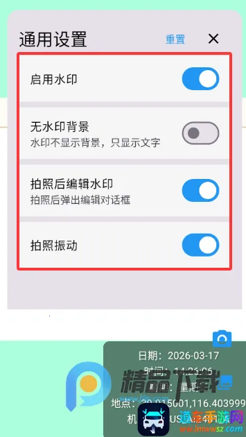 2、在通用设置中可以选择是否启用水印