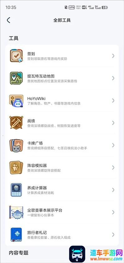 5、同时软件内还有很多实用的游戏工具,如签到、提瓦特互动地图、养成计算器等