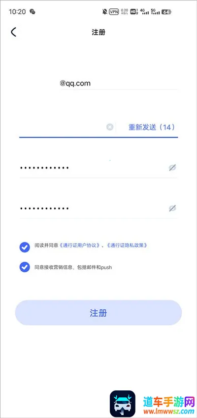 2、输入邮箱、密码、然后获取验证码,最后点击注册