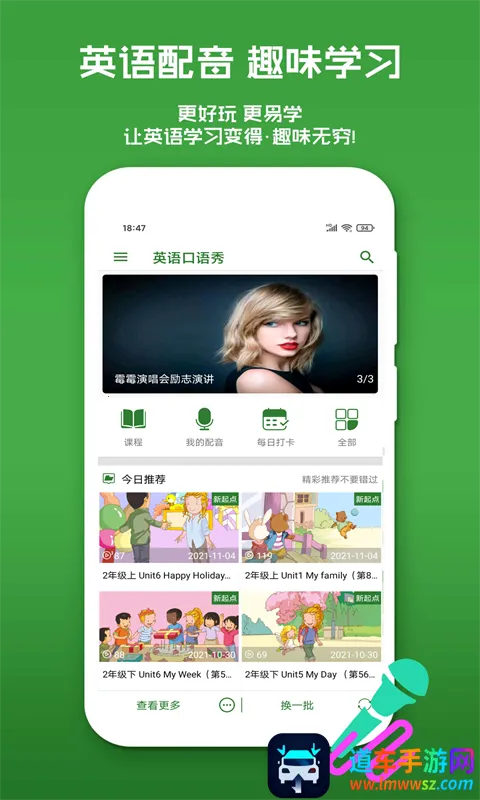 英语口语秀优势显著。它以全新方式摆脱传统枯燥学习法,通过模仿配音、生词翻译、作品分享等,随时随地玩配音学英语,提升口语。有海量热门经典美剧、电影大片等丰富素材,涵盖火爆美剧、基情英剧、动感英文歌、动漫纪录片等。还精心打造移动英语微课堂,量身定制系统化课程,实现视听说有效结合,在线名师24小时答疑,解决学习问题,让学英语轻松又高效。