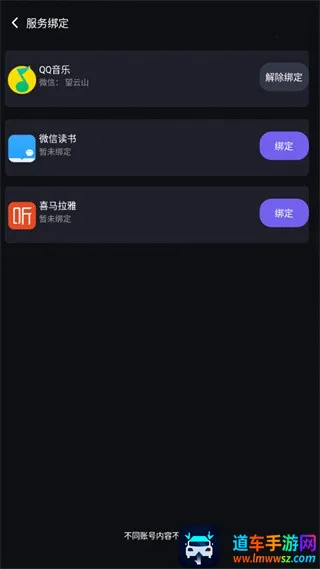 2、点击账号服务绑定,进入绑定详情界面