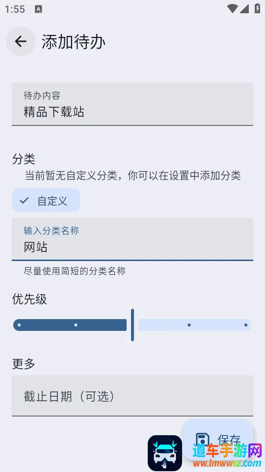 3、输入待办事项,设置分类和优先级。