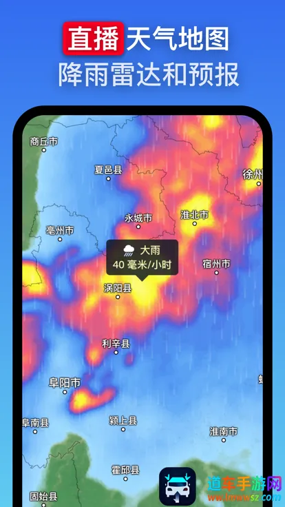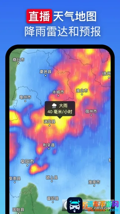 2. 天气雷达地图:利用天气雷达地图,提前了解风暴,该地图显示地面多普勒雷达实时检测到的雨雪,并通过雷达临近预报提供即时短期天气预报。
