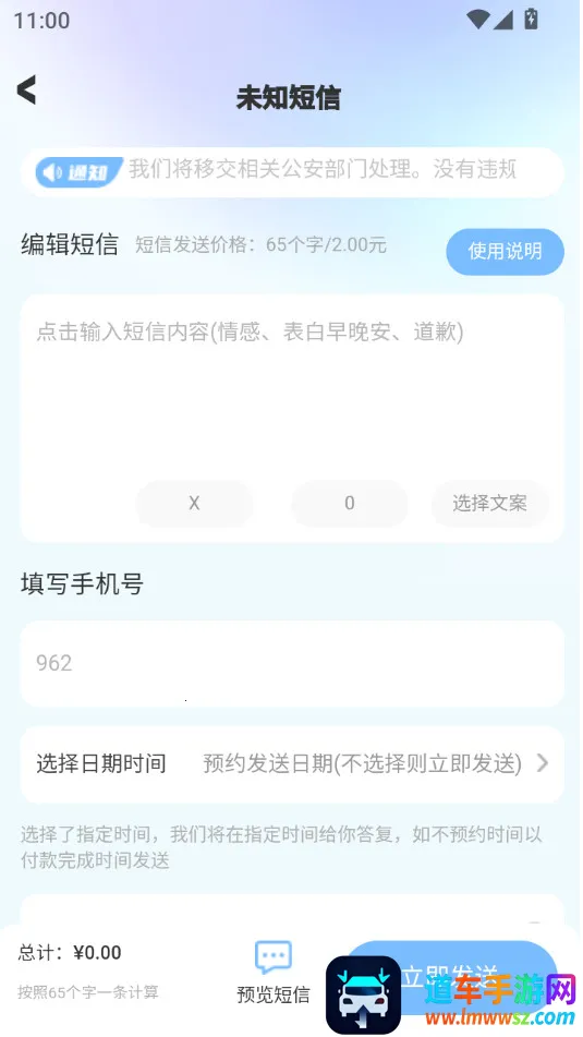 如果你担心匿名短信会被追查到,那这款匿名短信软件就能解决你的顾虑。它能让你在不暴露真实身份的情况下发送短信,保护个人隐私。其具备多种实用功能,支持单条或批量发送,还能定时发送,一键群发,提高沟通效率。在软件里,你可以从通讯录选接收者,也能手动输号码。它界面简洁,操作便捷,轻松上手。有隐私保护机制,消息全程加密,防止信息泄露。无论是向心仪的人表达情感,传递敏感信息,还是在匿名调查中发表看法,它都能满足你。不用担心被追查,放心地自由沟通,让交流更安心,帮你把那些难以启齿的话说出口,轻松解决隐私沟通的难题。