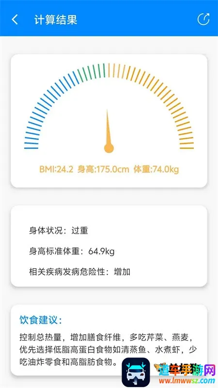 健康建议丰富:根据BMI数值提供饮食建议和健康建议,为健康管理助力。