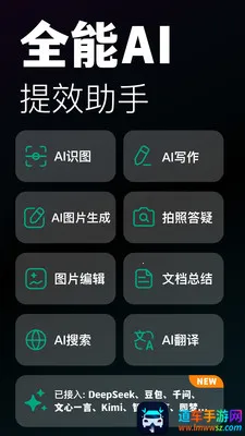 1. 功能全面集成:整合了Deepseek、豆包、千问、文心一言、Kimi、智谱清言、即梦等大模型,将聊天、图像生成、写作、编程、学习辅导等功能集于一身,无论是工作办公、学习教育、创意创作还是生活管理等场景,都能一站式满足需求。