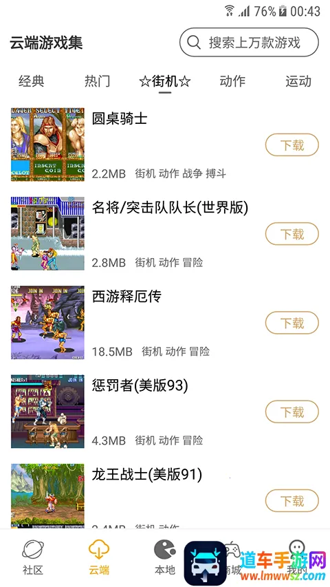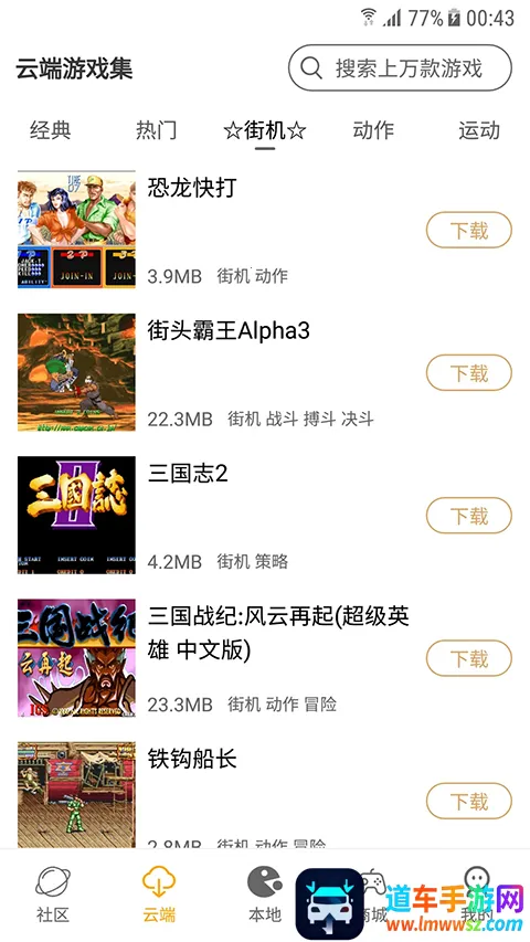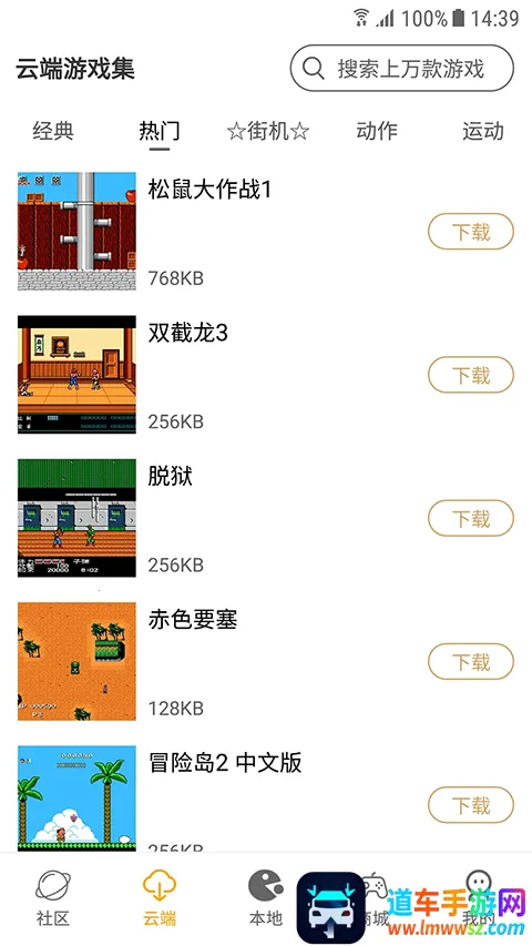 怀旧游戏馆App带你重返童年。这里有海量经典游戏,涵盖街机、红白机、掌机等多种类型,超过10000款游戏等你来玩。所有游戏即点即玩,免去下载安装麻烦,还完美支持手柄操作,还原原汁原味的游戏体验。你能自由创建专属游戏列表,收藏最爱玩的游戏。在活力社区,能和其他玩家交流心得,分享游戏技巧与美好回忆。打开App,热闹的游戏社区呈现在眼前,官方客服随时解答问题。本地菜单里有精心挑选的经典街机游戏,大部分可直接畅玩,也能下载重温。云端分类收纳上万款游戏,搜索功能帮你快速找到心仪游戏。部分游戏支持云端存档,下次登录接着玩。总之,它能让你尽情享受怀旧游戏的乐趣。