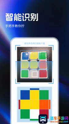 2. 智能拍照还原:通过相机识别实物魔方6面颜色,在线规划少步数公式,还有分步动画演示,跟着转就能轻松还原。