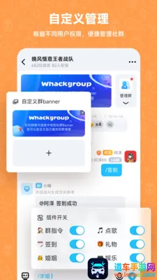 1. 全维度自定义:可完全掌控社群形态,从创建主群到群内分组,按游戏类型建垂直圈子,还能自定义房间权限、聊天气泡、专属表情,设置入群门槛与管理规则,适配不同规模社群需求。