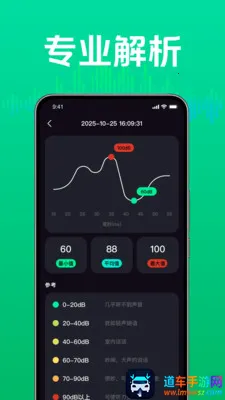 2. 专业解析与图表展示:具备专业的解析功能,通过图表生动展示噪音的变化趋势,还给出分贝等级参考,助您深入了解不同分贝对环境的影响。