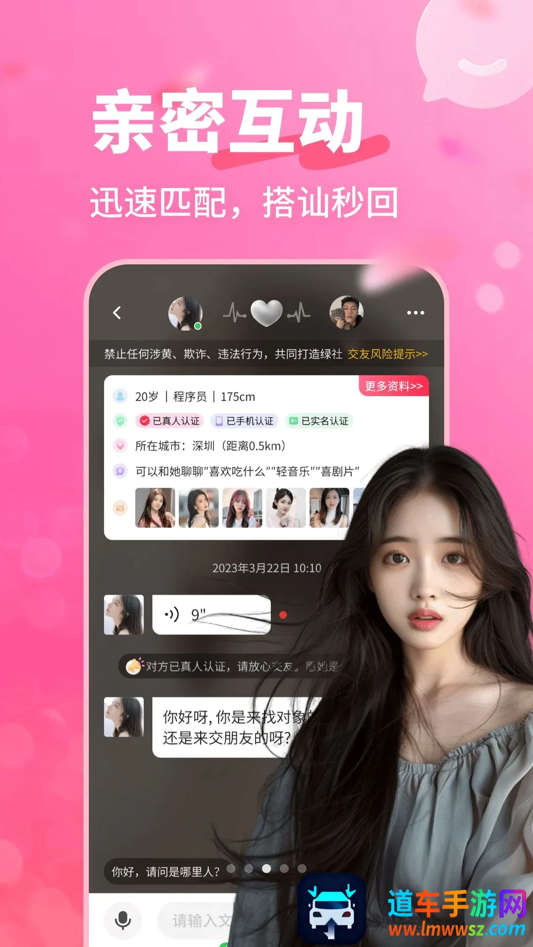 2. 真人认证,交友安心:严格的人脸核验把关,杜绝虚假信息,确保每一次相遇都是真实可靠的,让你交友无忧。