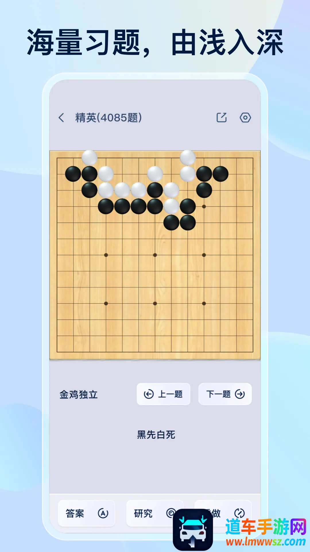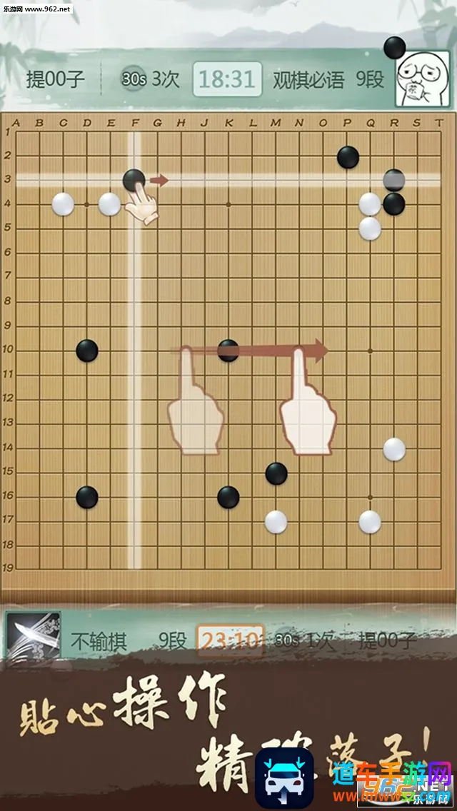 4. 趣味闯关活动:职业棋手精选5个难度,近千道死活题的趣味死活闯关,边玩边提高棋力。