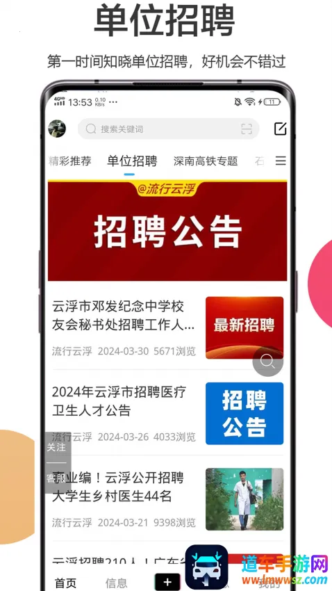 流行云浮信息网是一款超实用的生活资讯平台。它能为你提供海量本地生活资讯,涵盖招聘、租房、二手交易等各类信息,从此不再错过任何实用动态,让生活更便捷。这里有同城用户动态专区,你可以和同城好友互动交流,结交新朋友,甚至还有机会在线脱单哦。其功能丰富多样,生活资讯板块能让你了解更多内容;本地招聘助你掌握本地职位招聘信息;本地用户板块可查看并参与他人动态互动;活动资讯让你及时知晓并参与当地活动;在线交友帮你轻松开启交友模式。应用特色更是贴心,生活助手提供实用生活内容,编辑服务带来便捷,最新政策让你快速享受惠民福利,丰富专题满足不同需求,本地服务汇聚各类生活服务。有了它,生活轻松又高效,快来下载体验吧!