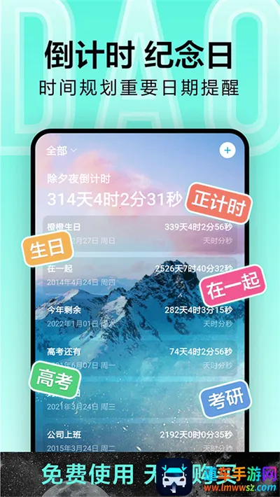 2. 多维度事件管理:可同时管理高考倒计时、纪念日正数、待办事项提醒等不同时间节点,采用色彩分类系统区分事件优先级,重要日程自动置顶。