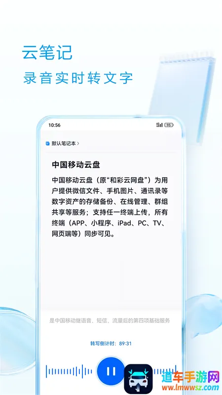 中国移动云盘是一款超实用的网盘工具。它功能强大,能解决不少问题。数据加密保护隐私,还有运营商级安全保障,安全性超高。提供免费存储空间,新用户注册就能得。支持手机备份,像图片、音视频、通讯录等资料都能便捷备份,给手机腾出空间。有智能文件处理功能,内置图片文字识别、云笔记等智能工具,可直接在云端处理文件,提升工作效率。文件收集与共享很方便,能一键收集多人文件。智能云相册通过人脸识别自动分类照片,方便搜索。还有PDF互转等实用工具。在收费方面,它有免费存储空间,不过如需增加网盘容量是要收费的,可通过官方微信、官网及客户端购买扩容套餐。总之,中国移动云盘是管理数字资产的好帮手,值得一试。
