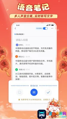 2. 智能又便捷:内置图片文字识别、云笔记等智能工具,能在云端处理文件;支持一键收集多人文件,自动发送至指定邮箱或转存云端;人脸识别技术自动分类照片,便捷搜索,高效找图。