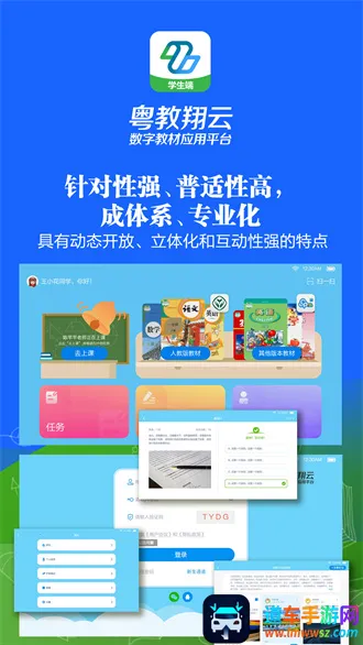 粤教翔云广东省数字教材平台由广东省教育厅授权开发,为全省中小学提供数字化教材。覆盖1300多万师生,有海量资源,具备多种功能及特色,能助力教学、满足个性化学习,家校沟通便捷,还支持多种教学管理。