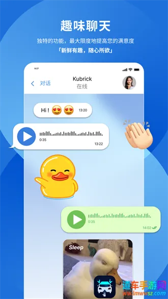 2. 多样聊天方式:支持一对一聊天和群聊,还有语音视频聊天,提供多种个性化聊天方式。