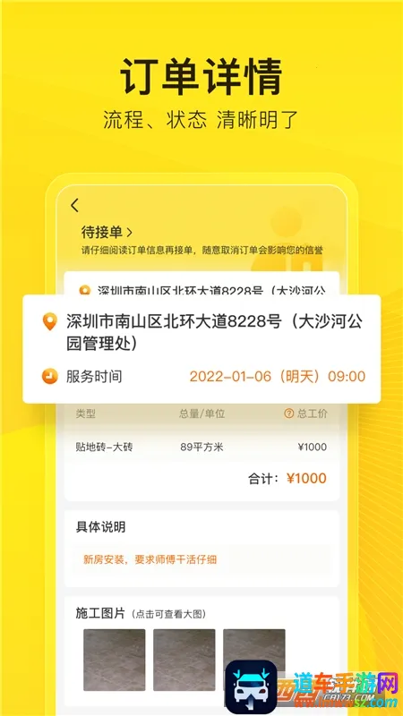 在工作生活中,很多人都想知道是“工到自然成”还是“功到自然成”。其实有一款软件能很好地帮到大家,那就是工到app。它是一款专为用户提供线上即时用工的服务平台软件。这里工种丰富,涵盖水电工、电焊工、泥瓦工、木工等,能满足不同用户的用工需求。业主社区物业可以通过它快捷发单,选择所需工种,极速响应订单,还能便捷实现订单记录。工友师傅能快速接单,智能匹配合适订单,轻松完成服务并结算收入。而且工到免费版支持选购家居建材好物、实用五金配件和生活日用等。软件展示清晰明了的订单流程状态,提供完善售后保障,支持极速提现。有了它,无论是找工人干活,还是购买相关物品,都方便快捷,能帮你轻松解决不少实际问题,赶紧来本站下载使用吧!