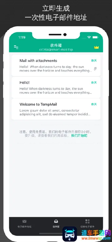 Temp Mail(临时邮箱工具)优势显著。**实时接收读取邮件及附件**,极大提高工作效率,无需等待。新邮件推送通知及时,能确保第一时间知晓,及时查看。邮件下载功能便捷,点击即可保存,无广告干扰,享受高级服务。无论是办公还是日常临时接收邮件,它都能满足需求,提供流畅、高效、安全无扰的邮件使用体验,是处理邮件事务的得力助手。