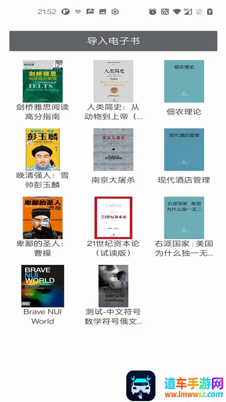 1、下载软件后首次打开你可直接点击导入按钮从手机文件中选择想看的书籍轻松加入个人书架。