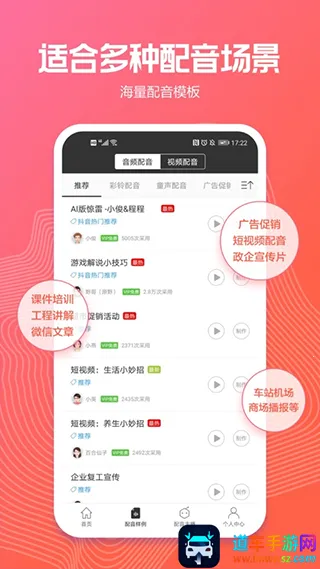 配音阁是一款专业的配音应用。它能找到各类配音资源,支持一对一私人定制服务,还提供精美的文案策划服务,一次性解决多种需求,呈现高品质配音效果。操作简单,界面直观,一键合成语音,流程高效。文字能秒转语音,即时完成音频制作。海量样音模板文案搭配优质背景音库,满足多样创作需求。采用专业音频设备,由配音师打造高品质声音。可自由调整声音文本内容,依据需要定制音频效果。提供一对一专业服务,完善的售前售后体系保障使用体验。适用于多种场景配音,如短视频、解说、广告促销、企业宣传等。总之,配音阁是一款功能强大、使用便捷的配音软件,能满足不同用户的配音需求。