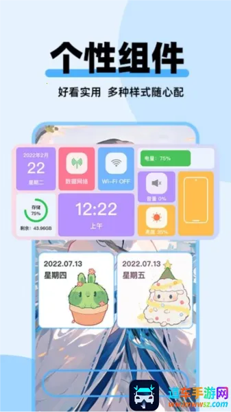 2、多样化桌面小组件功能:支持天气信息、重要日期倒数、数字时钟、日历视图等常用组件,可自由组合与布局。