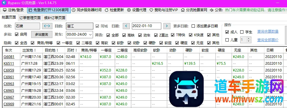 Bypass分流抢票(抢火车票工具)特色