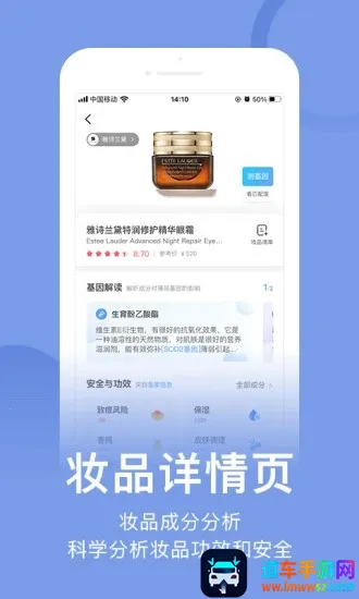 独家算法,匹配专属成分:通过化妆品全成分表结合个人肤质类型,运用独家算法,计算出适合及不适合自己的化妆品成分,为孕妇护肤、敏感肌等人群挑选护肤品提供有力参考。