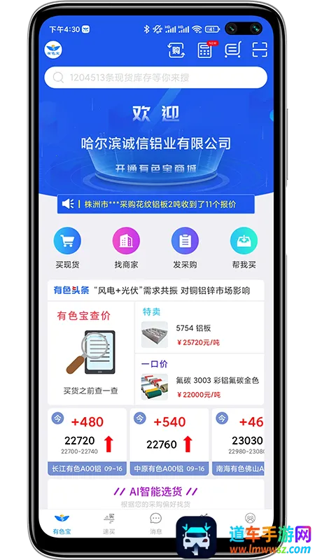 想知道有色宝长江有色金属今日铝价格行情?那就赶紧来了解一下有色宝这款软件吧!它可是有色金属行业的专业电商平台。这里能语音播报铜铝铅锌镍现货行情,让你随时掌握动态。它涵盖了南海有色、长江有色等众多市场的行情资讯,每天提供真实准确的报价。还有图表帮你掌握价格变化趋势,精选优质库存,找货超方便。通过它的采购大厅,能汇集行业采购单,智能推送供应商报价。铝材计算器可在报价和发货时,输入铝材规格计算重量和价格。地图模式能展现供应商和库存分布等信息。有了有色宝,你能轻松了解铝价格行情,明码标价的现货让采购更放心,还能在线发布商品信息推广订单,一站式解决购销问题,交易安全又高效,真的超实用!