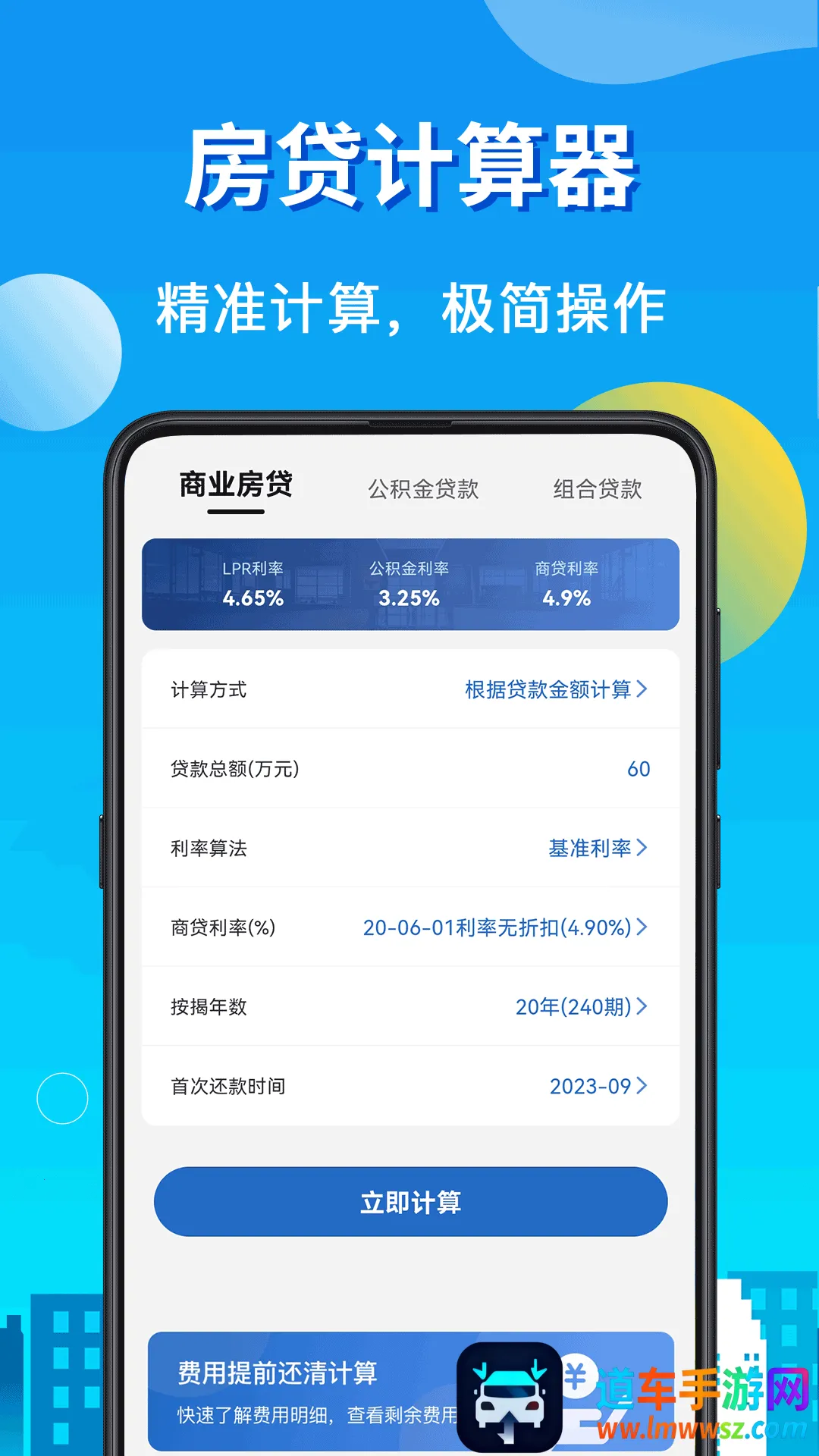 房贷LPR计算器是成都沙丘猫科技有限公司推出的应用,集多种贷款计算、购房资讯流程于一体。支持商业、公积金等贷款方式及等额本息、等额本金还款,能一键计算,提前还款计算灵活,还有丰富购房宝典,操作简便。