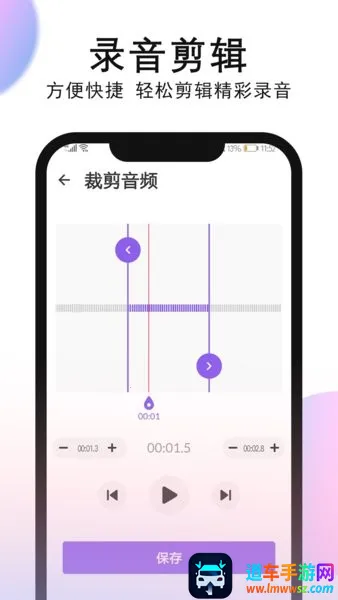 3. 具备双麦克风立体声录音,专业滤音器提升录音品质;还有毫秒级剪辑工具,可快捷剪辑去掉无用音频并设置成铃声。