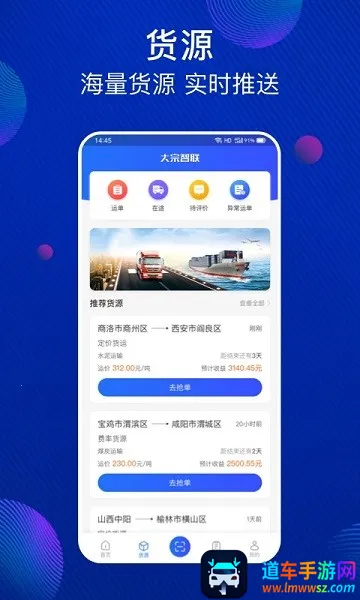 大宗智联司机接单平台是中国领先的大宗智慧供应链与物流服务提供商旗下专为货运师傅打造的平台。操作简单,能快速查阅订单数据、整理订单。提供多种功能,如实时查看物流、管理收入等,助力司机高效接单运输。