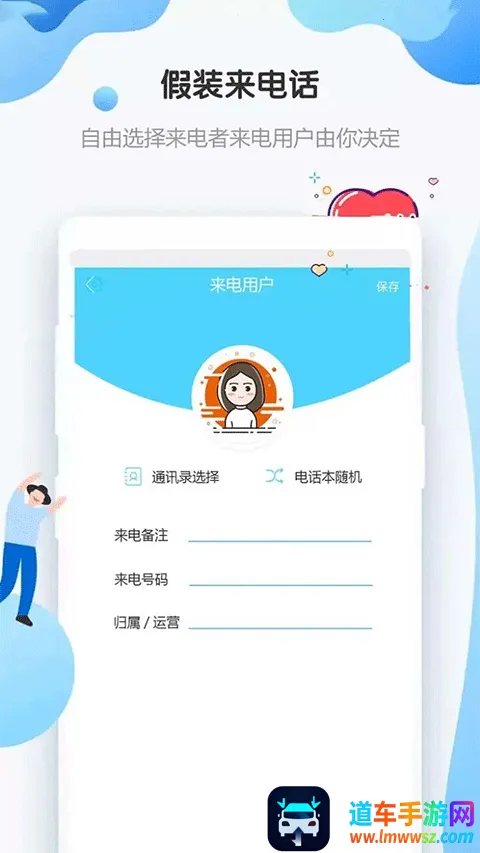 2、自由设置:可自由定义来电人号码、归属地、铃声,设置来电时间,还能添加和删除,设置指定时间来电;能自由选择和切换多种来电壁纸,也可导入手机中的壁纸图片;支持自定义通话内容,设置来电用户名称等。