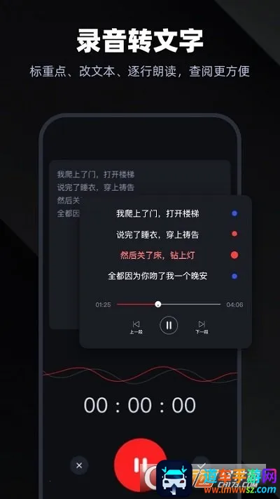 2、便捷处理:操作简单,界面简洁易用,用户能迅速上手。支持实时录音转文字,还可一键整理录音内容,内置专业录音剪辑功能,支持添加标记、倍速播放等操作。