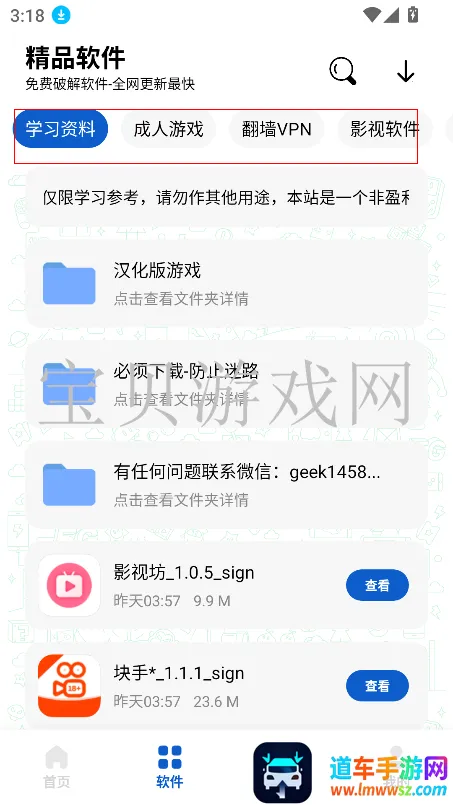 2、提供大量的软件资源分类,可以筛选喜欢的类型